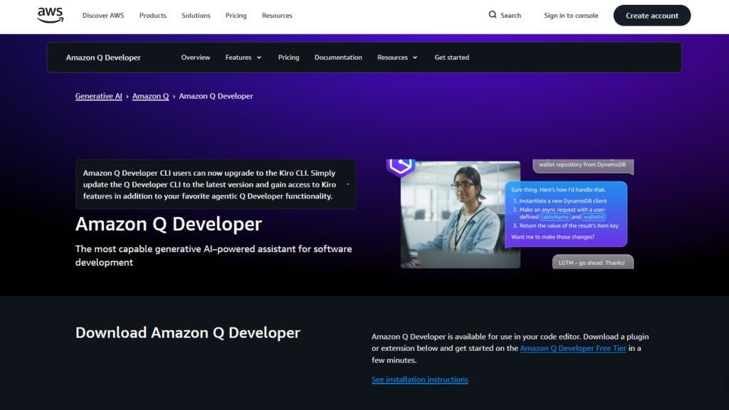 Link: https://aws.amazon.com/q/developer/