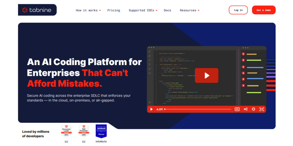 Tabnine takes autocomplete further with AI that adapts to your entire project or team’s codebase, working in VS Code, IntelliJ, or Sublime. It’s privacy-focused with local models available.